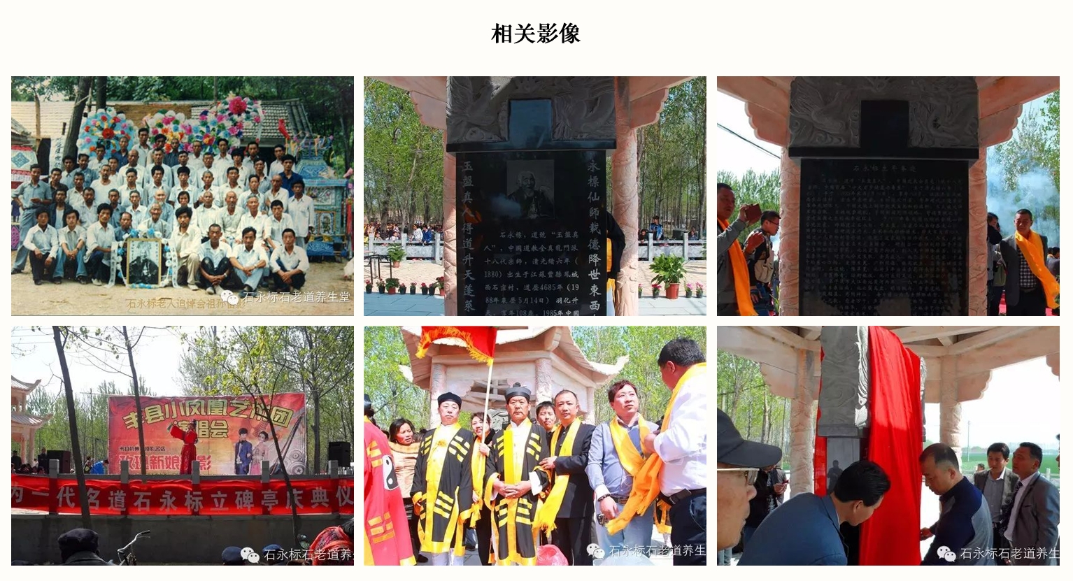石老道早年行走江湖广交天下友,弟子桃李满天下,曾数次在河南嵩山少林寺挂单治病,原中国人民解放军高级将领许世友将军早年在少林寺学艺,曾向"石老道"请教过道教医术,结下了深厚的情谊。"文化大革命"开始,许世友将军任南京军区司令员,他在百忙之中还多次寄钱寄物给石永标老人,以表想念牵挂之情。 上世纪四十年代初,上海被当时称作"冒险家的乐园",社会上层名流汇聚上海,百家争鸣,百花争艳。石老道在上海期间,不仅治愈了数以千计疑难病人,还结识了不少当时的一代名流,社会精英。上海"江南镖局"总舵邱邦杰在上海滩曾显赫一时,慕"石老道"先生之名,拜在先生门下为徒。还与著名京剧大师、梅派京剧创始人梅兰芳先生有着深厚的友谊,梅兰芳大师在一次演出时不慎跌伤,经"石老道"医治后不久痊愈,两人一见如故,相互倾慕,从此结下了深厚的友谊, 梅大师在沪演出期间,多次以最佳排号的'演出票'相赠"石老道",以表敬重之意,演出后两人以茶代酒、畅所欲言,友谊情感非同一般。 老人一生行医济世,救死扶伤,救治伤痛无数。 老寿星性情爽朗,淡于名利,心胸开阔,一生不吸烟、不饮酒,喜好徒步远游,采药治病,他曾多次带领长孙石丙习到大兴安岭、西岳华山等地采集中药,又口传心授细心教导长孙学习自己的传统炮制与秘方组合,使其能更好的服务于百姓,医术、 医德在周边地区家喻户晓,广为流传,百姓声称:"江南有个夫子庙,江北有个石老道",称颂"石善人" 、"活神仙" 、"百岁神医"、"正骨奇人","石老道膏药"也随之名扬苏、鲁、豫、皖,飘至全国。