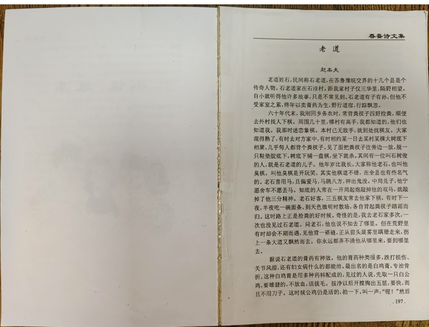 2010年6月,丰县“春蚕诗文集”第五集以“老道”为题,报道了石永标老先生高超的道医技艺。